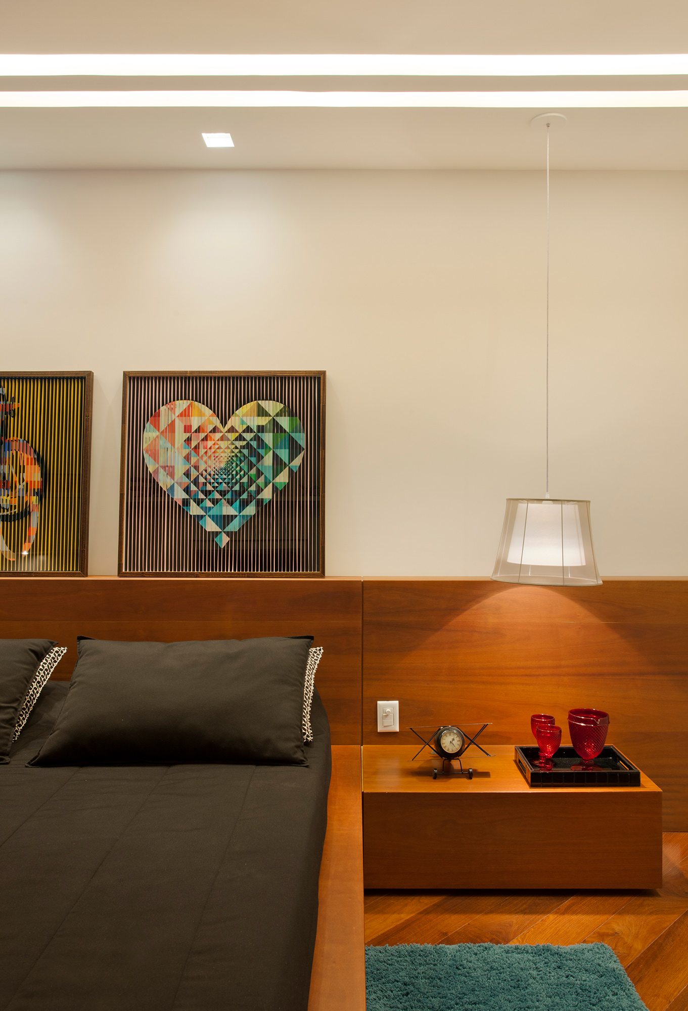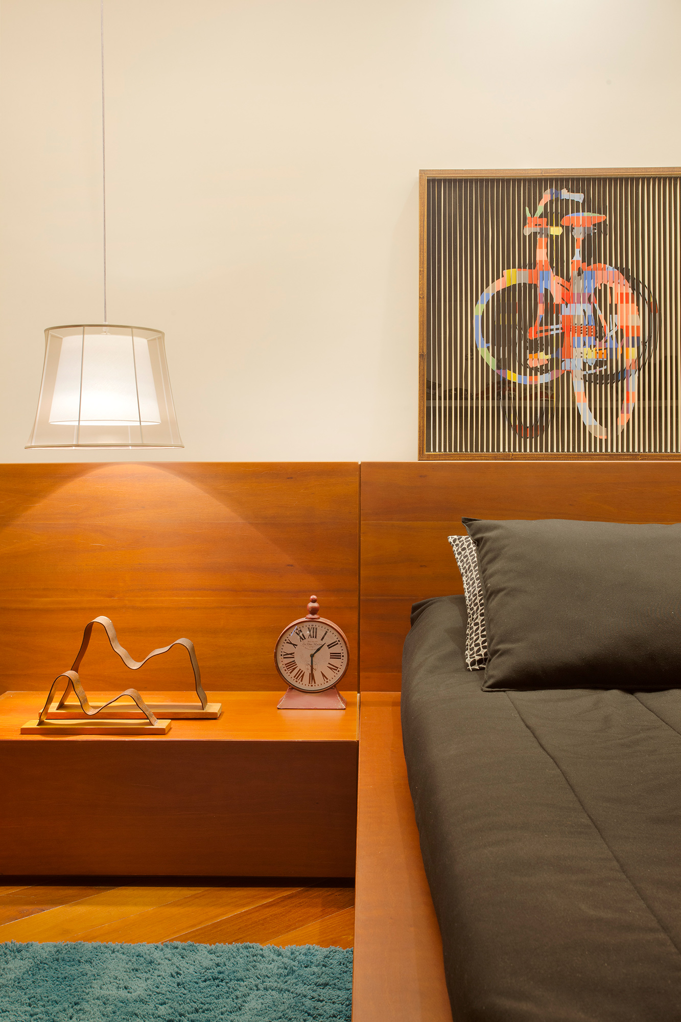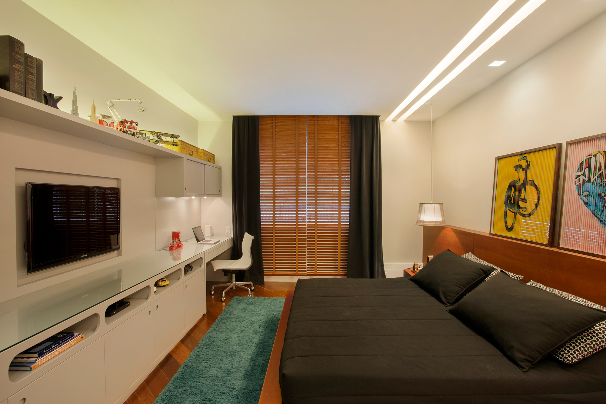 O colorido do tapete, dos itens de decoração e do acervo pessoal de objetos lúdicos compõe o espaço trazendo personalidade e história para o projeto.